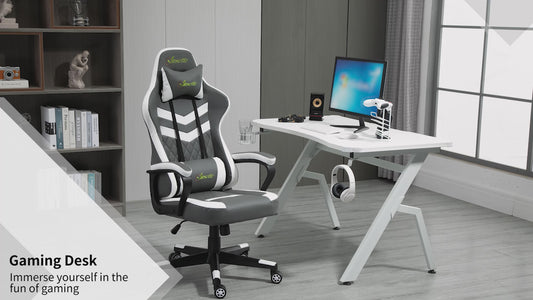 Gaming Desk Writing Racing Computer Table Workstation with Headphone Hook Curved Front Adjustable Feet for Home Office Use