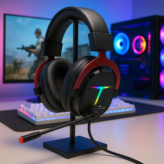 Pro LED Gaming Headset Stereo 3.5mm Wired Headphone - Red+Black