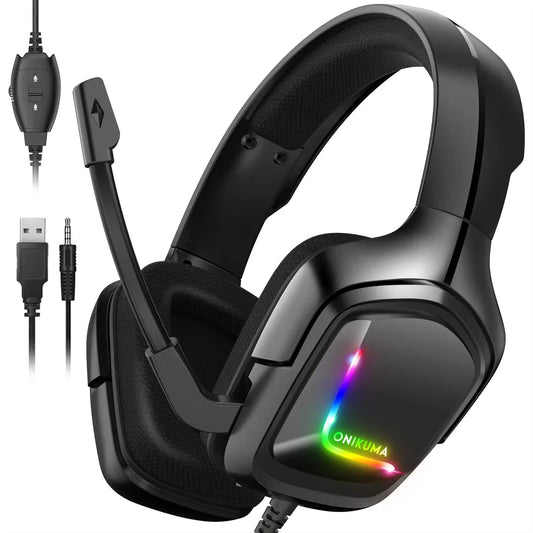 3.5mm LED Gaming Headset with MIC HiFi Headphones for Laptop Xbox - Black + Blue