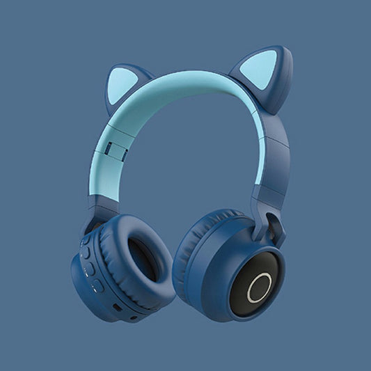 Wireless Cat Ear Bluetooth 5.0 Stereo Bass Headset LED Lights Earphone for Adults - Grey / Dark Blue