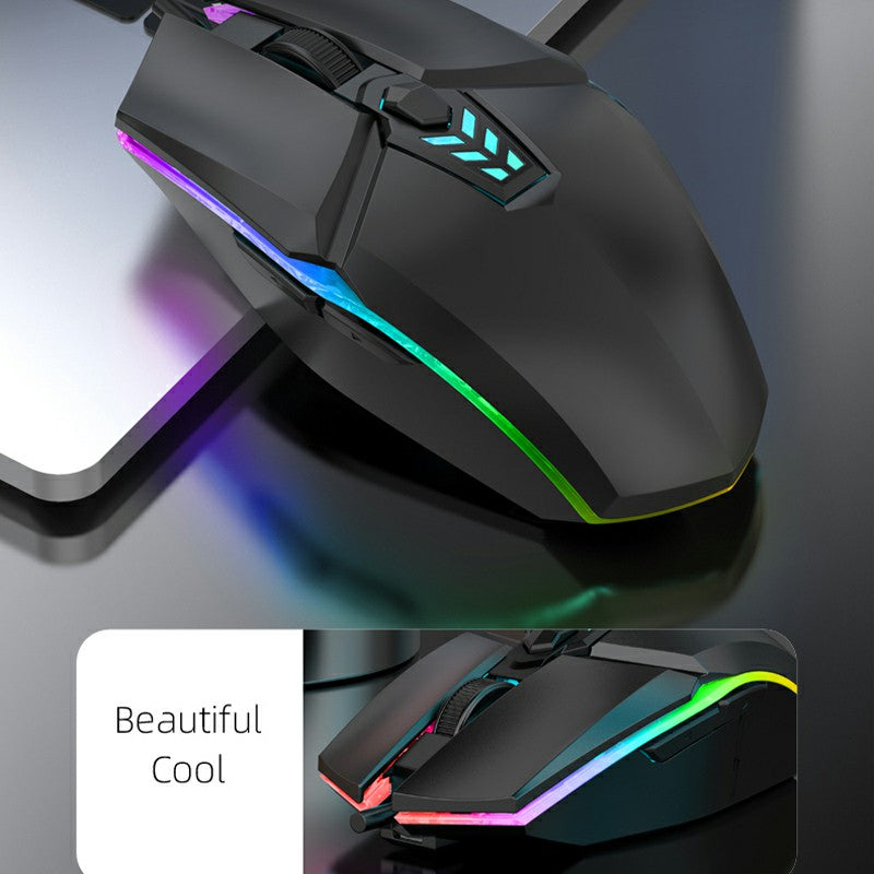 1600dpi RGB Lighting Gaming Wired Mouse with Silent Buttons - Black
