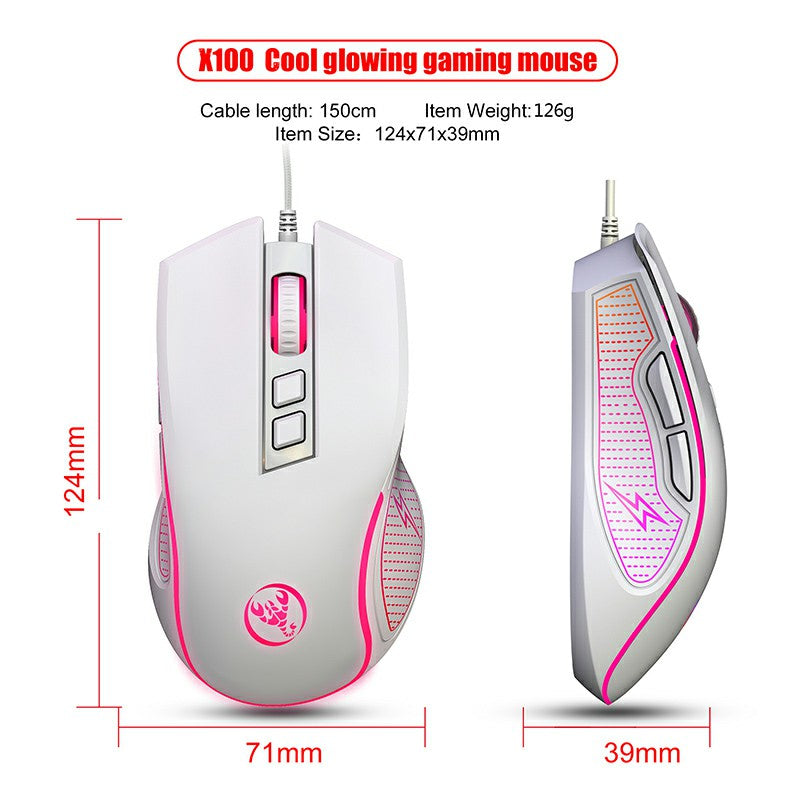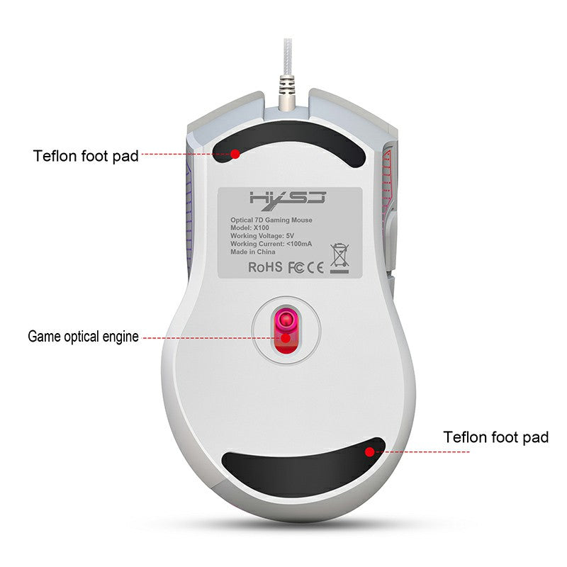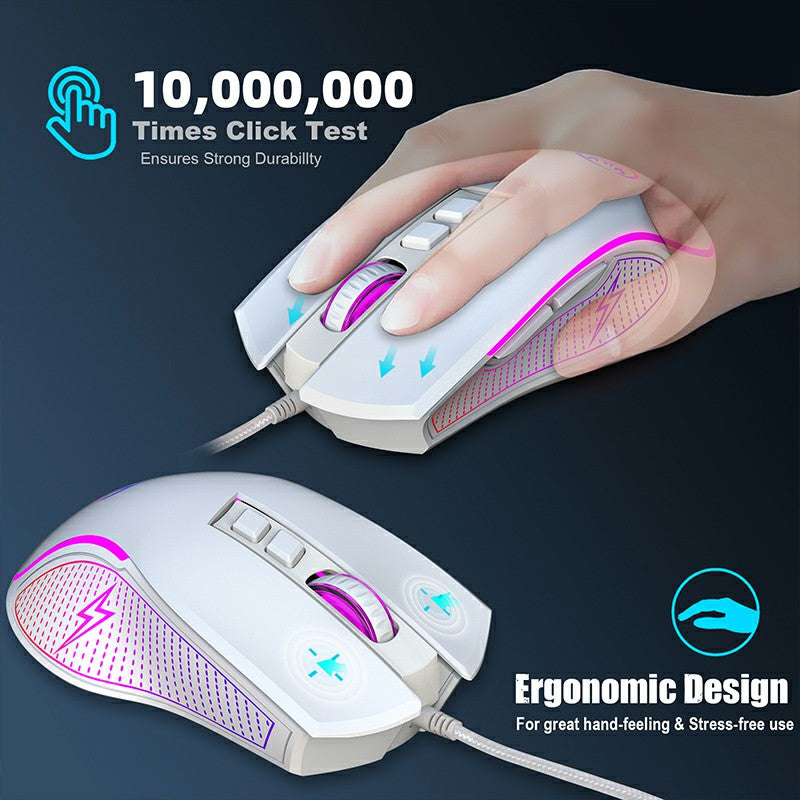 3600 DPI RGB Lighting Wired Programmable Changeable Colours LED Gaming Mouse - White