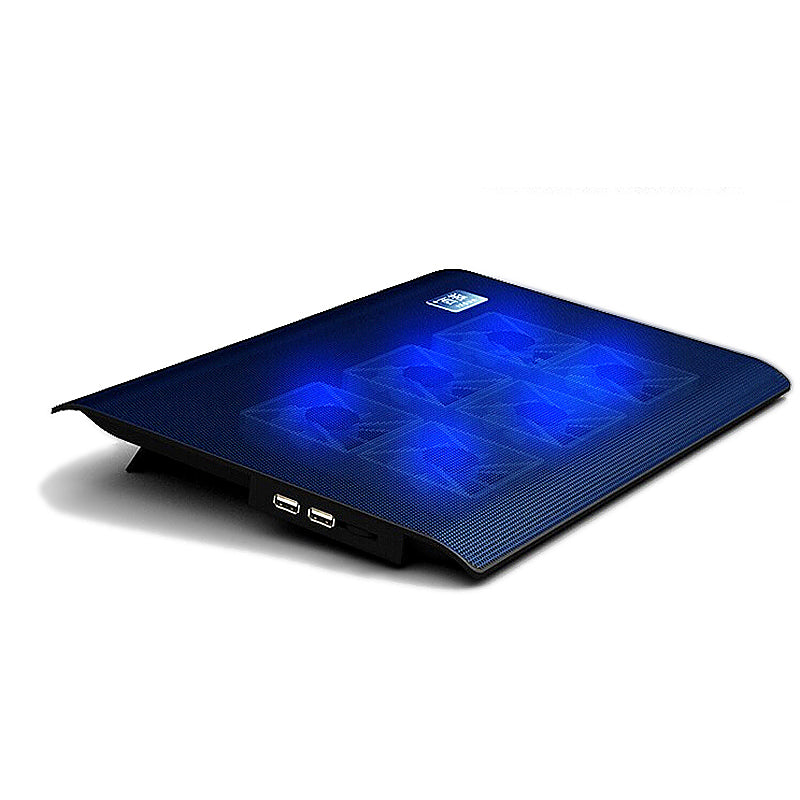 6 Fans Notebook Laptop Cooler USB Cooling Pad Cooler Mat for Laptops Sized 10-17 inches in Sleek Black.
