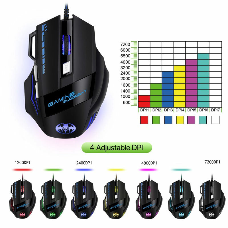 7200 dpi RGB Lighting Luminous Gaming Mouse 7-key Office Computer Mouse LED Gaming