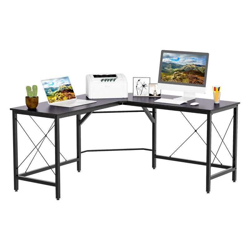 Corner Gaming Desk L-Shape Computer PC Workstation Home Office Three Worktop Writing Table 76x150cm Black