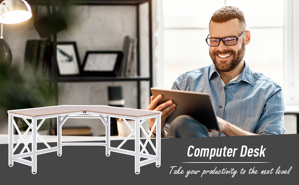 Corner Gaming Desk L-Shape Computer PC Workstation Home Office Three Worktop Writing Table 76x150cm Oak