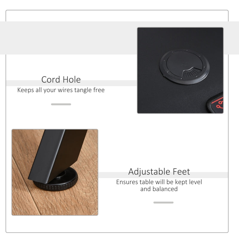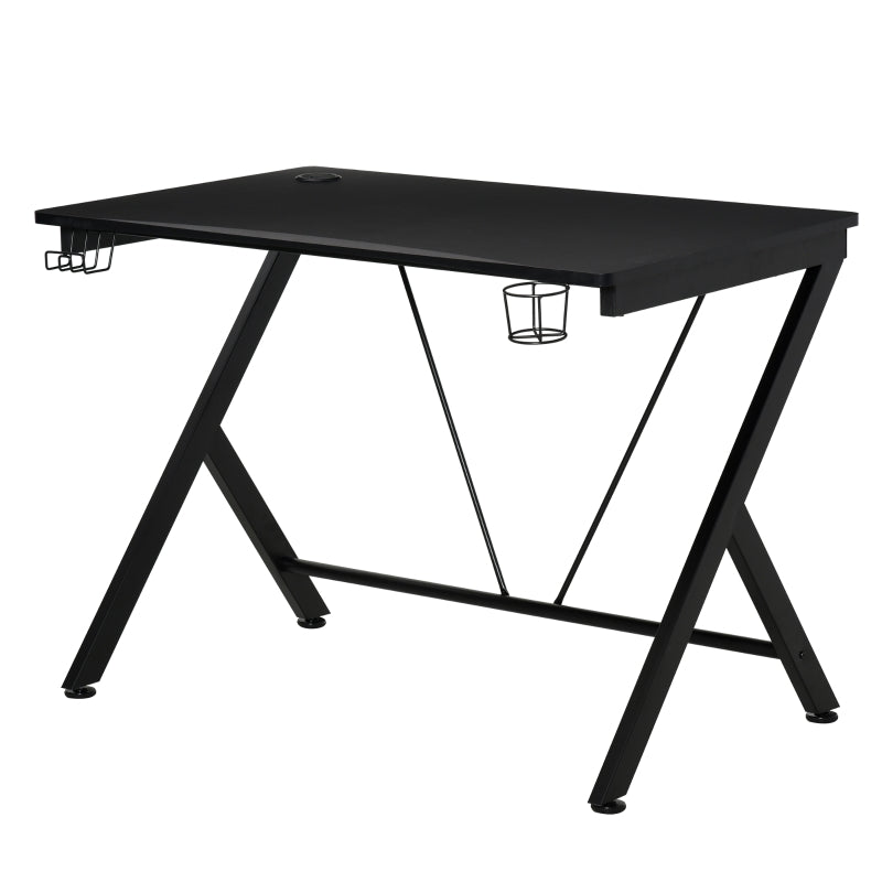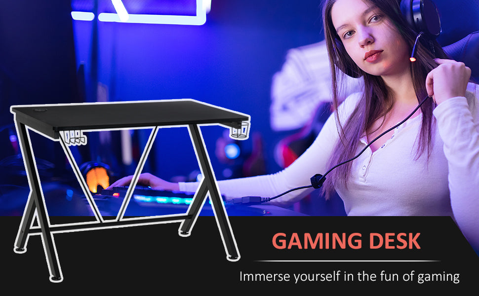 Gaming Desk Computer Table Metal Frame with Cup Holder, Headphone Hook, Cable Hole, Black