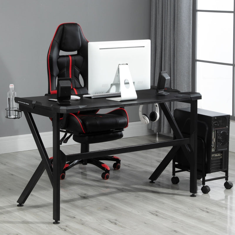 Gaming desk with Cup Holder Headphone Hook Feet Adjustable 120 x 66 x 75cm Black