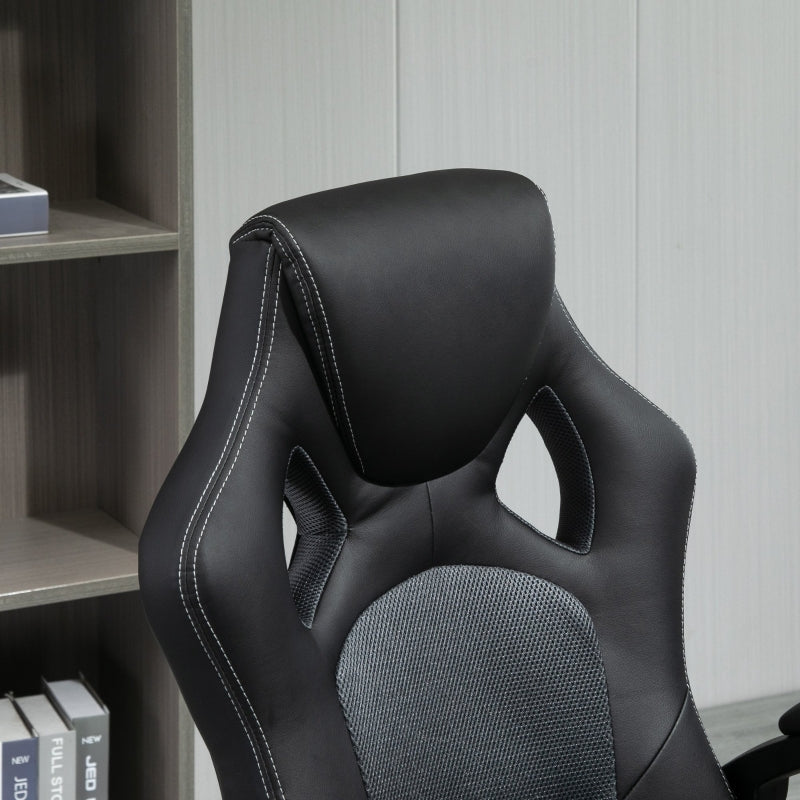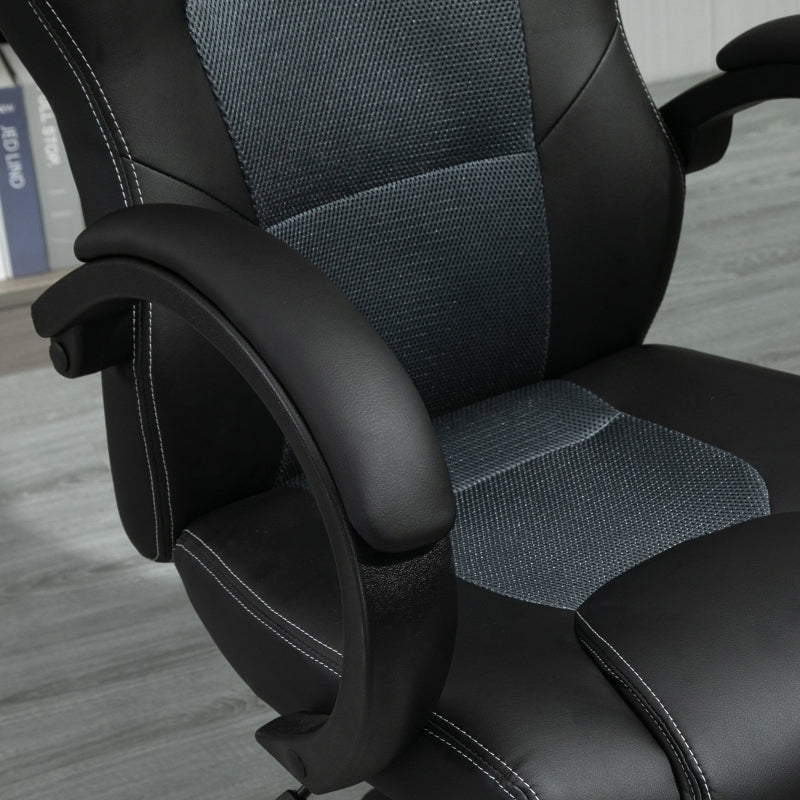 High-Back Office Chair Gaming Chair Faux Leather Swivel Computer Desk Chair for Home Office with Wheels Armrests Black/Grey