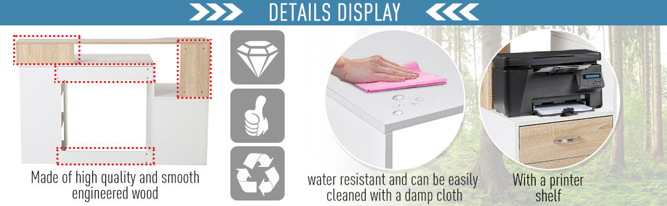 - Attractive Oak and White Finish: Blends seamlessly with different decor styles, adding elegance to your workspace.