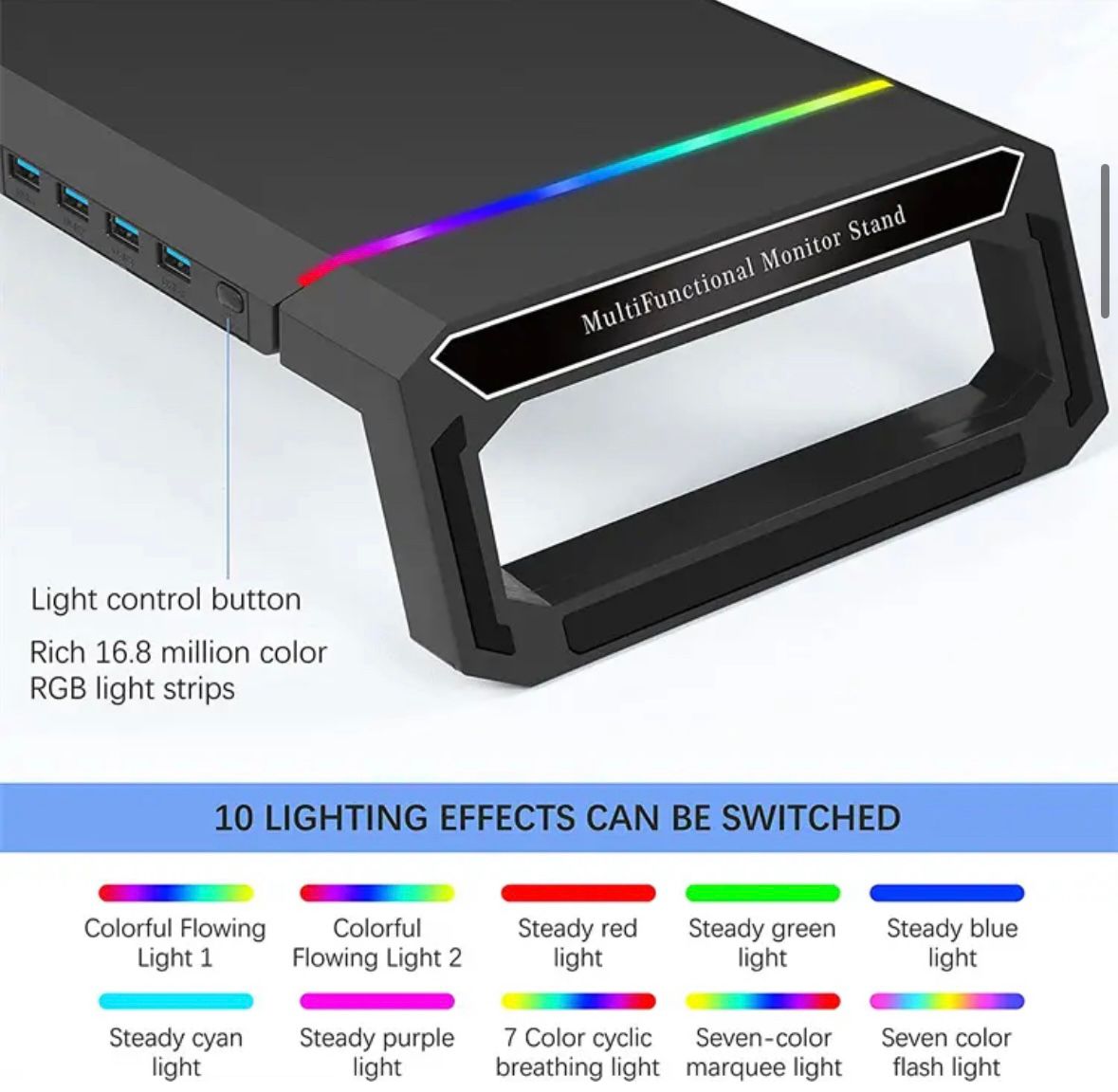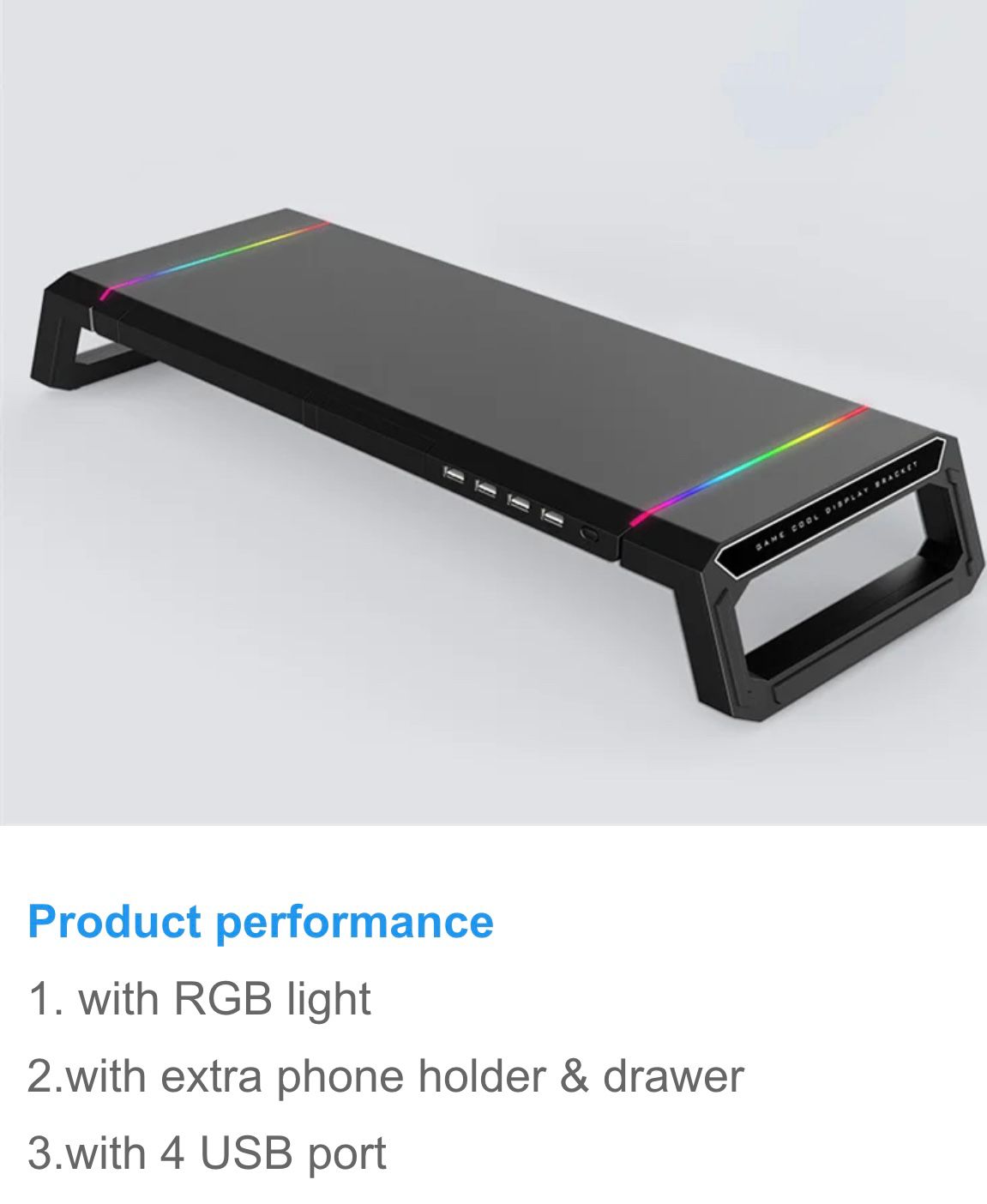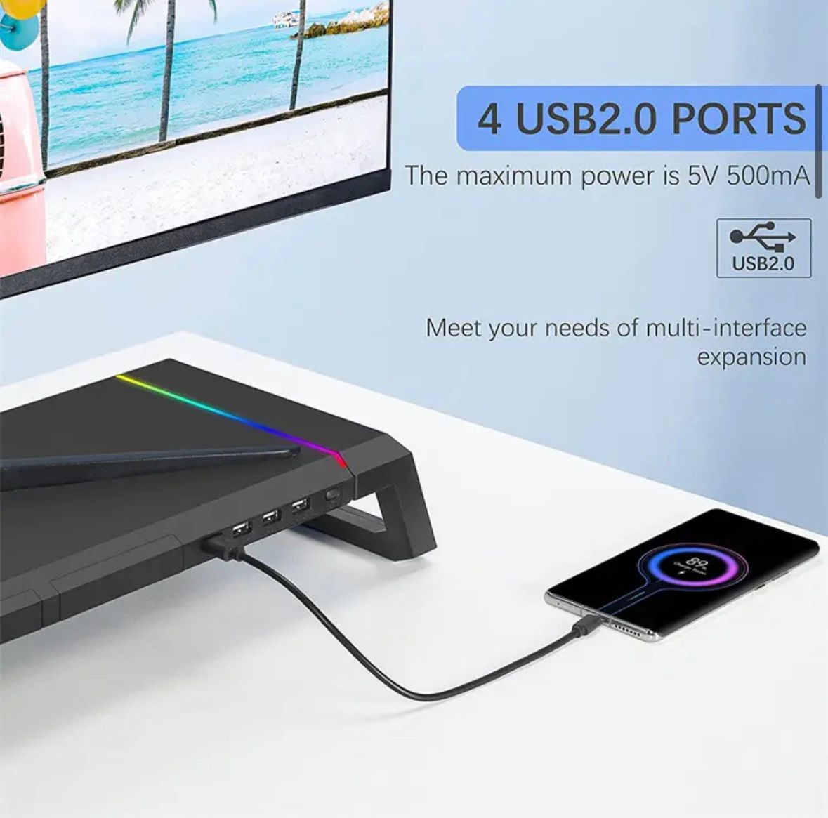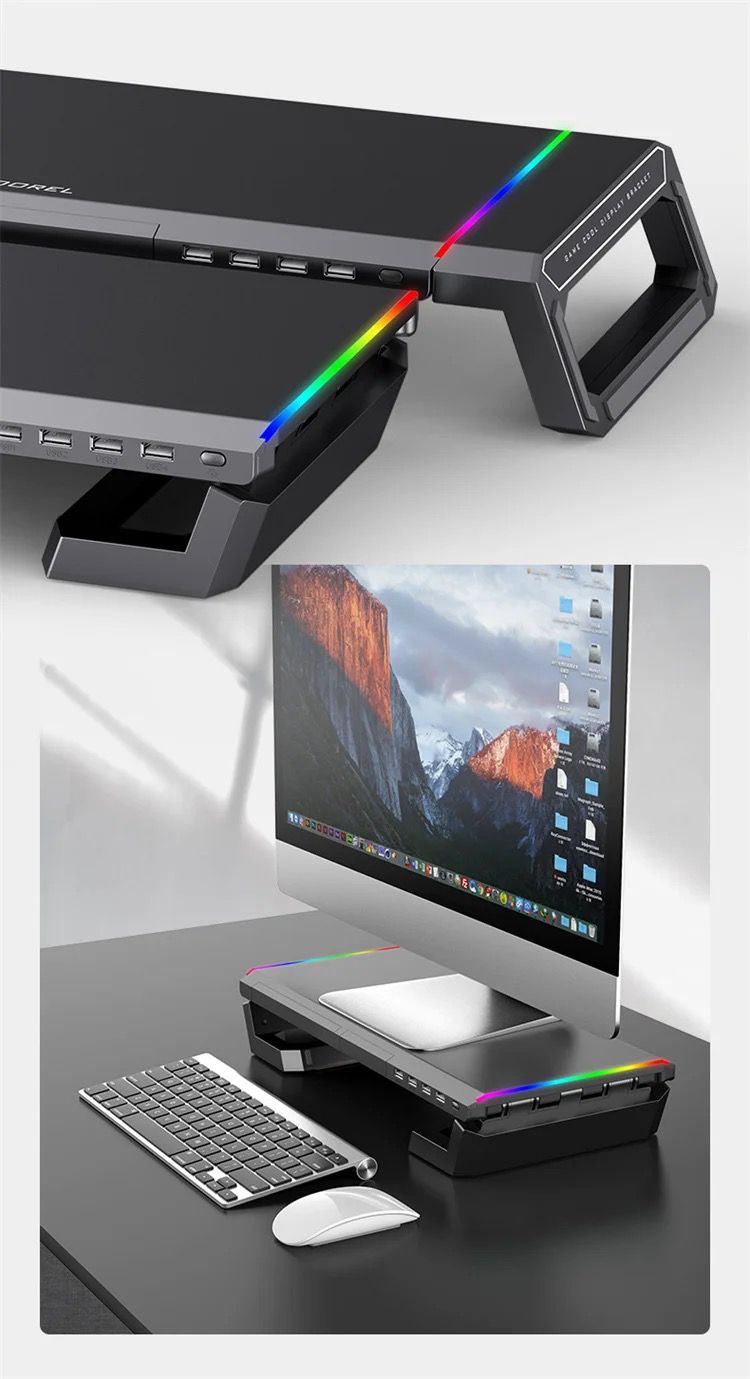 Monitor Table Stand Monitor Stand Riser Computer Screen Monitor Stand Adjustable RGB lights, charger, Phone Holder
