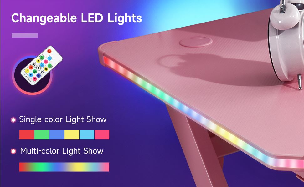 - Immersive Gaming Style: Carbon fiber style particleboard desktop with RBG lights on both sides for a vibrant gaming experience.