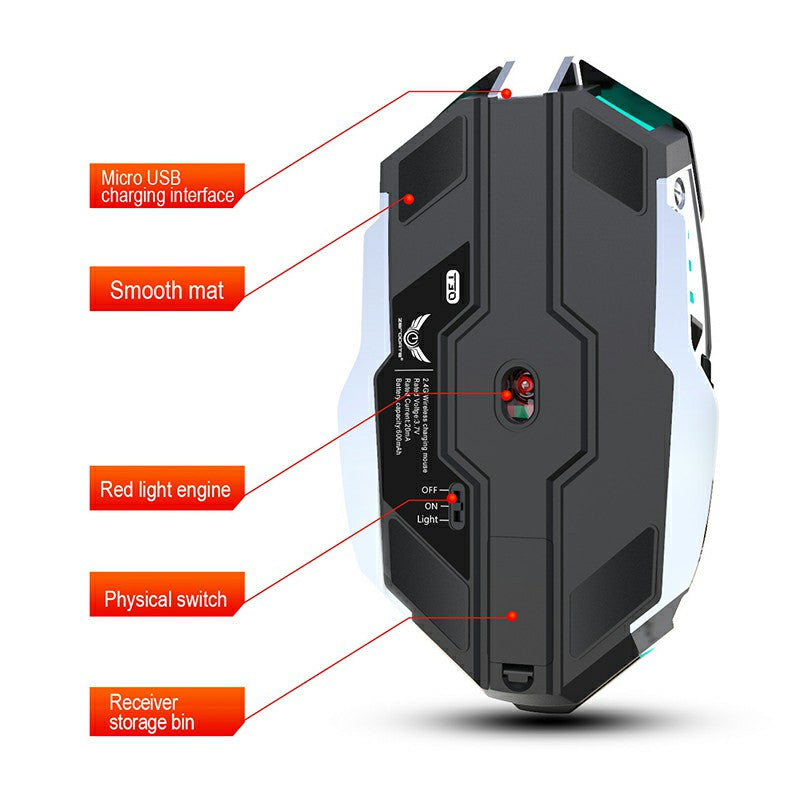 - Light Mode: Enjoy the RGB marquee effect, with a light switch button located on the bottom of the mouse.