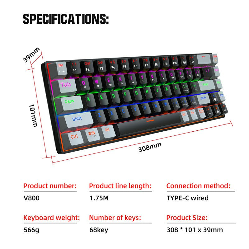 - Ready-to-Use Package: Includes the V800 Mechanical Keyboard and a user manual.