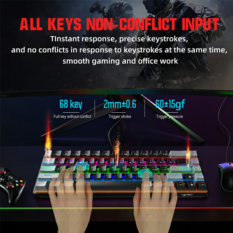 - Elegant Punk Style: Sleek black and gray 68-key design, perfect for both office and gaming setups.